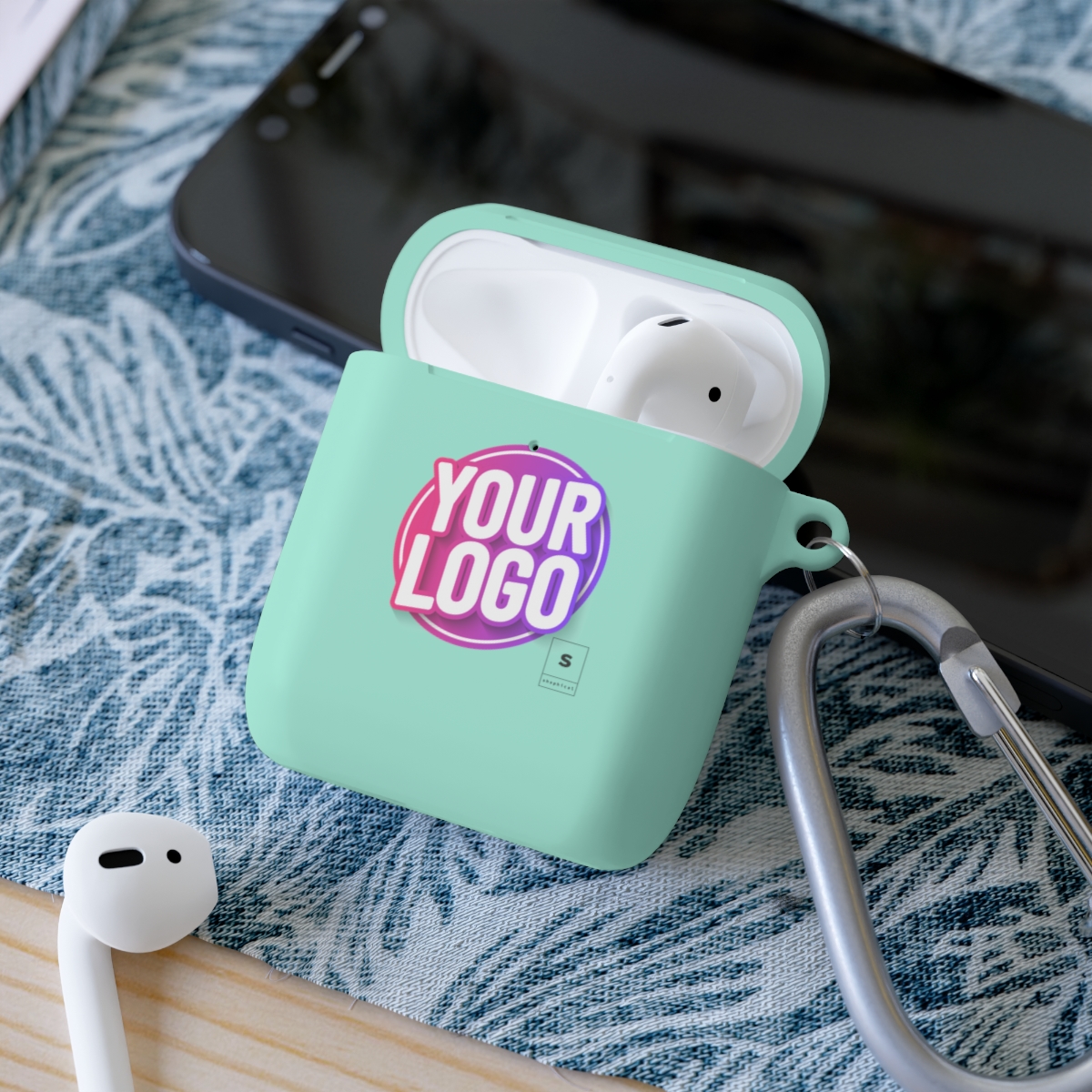 This custom AirPods cover safeguards your AirPods/AirPods Pro against bumps, scratches, and drops. With each personalized AirPod case you also get a metal carabiner for secure, effortless transportation. Compatible with the regular and wireless charging case for Airpods and AirPods Pro. Both AirPod and Airpod Pro cases are available in 5x colors: White, Navy, Pink, Mint, and Black.