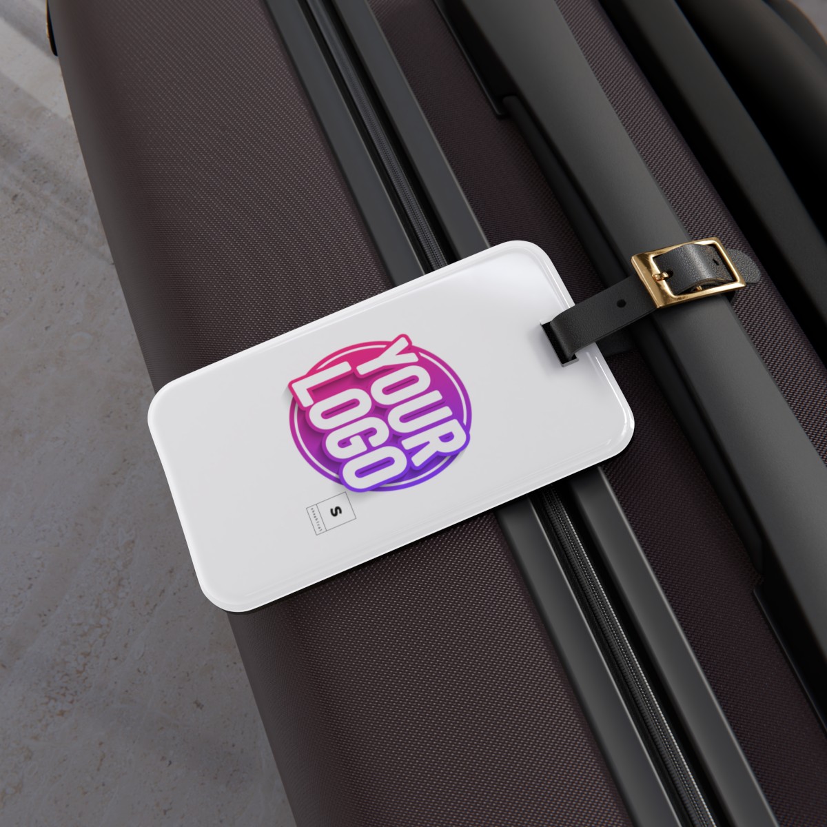 Our acrylic luggage tags come with a business card insert on the back where people can enter their contact information. They’re super lightweight, so that they won’t add any weight to baggage allowance. Each tag comes with a durable leather strap.