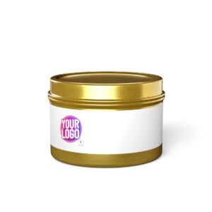 Create a treat for aromatherapy enthusiasts with these custom tin candles. Available in 4oz and 8oz tins, these candles come natural coconut soy wax that is made and hand-poured in the USA. All candles feature a lead and zinc-free cotton wick with an average burning time of 20 hours (4oz) and 40h (8oz). Choose between 5 captivating aromas: evergreen, fresh coffee, mango coconut, spa retreat, or vanilla bean, and 3 tin colors: gold, silver, or black.